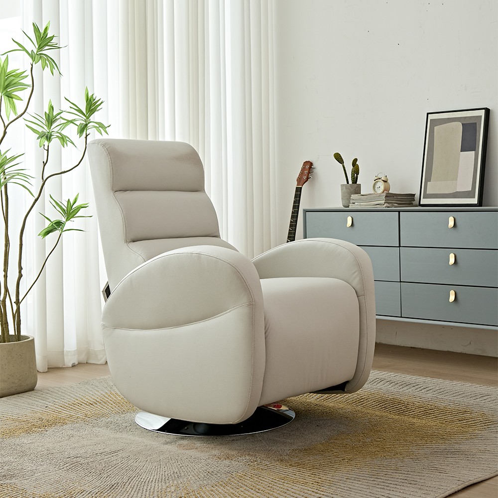 产品描述 左右360°旋转 靠背110-160°可躺 材质:纳米皮 产品尺寸:72*94*100 CM 包装尺寸:76*78*65 CM 重量:36 KGS 装柜量:180 PCS